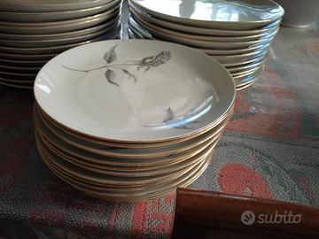Il servizio di piatti è con fiori in grigio con finitura in oro. Il servizio è composto da :