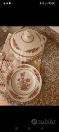 Bellissimo servizio di piatti Porcellana dai colori vividi, della Kronester Bavaria composto da zuppiera, vassoi, salsiera più 12 piatti piani, 12 piatti fondi e 12 piatti da dolce/frutta.