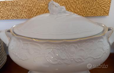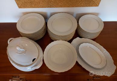 Vendo servizio di piatti composto da 12 fondi, 12lisci,12 da d'esser, 1zuppiera,1 insalatiera, 1sperluna piccola e una grande con bordo in oro... Nuovo mai usato
