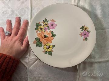 Trattandosi di un servizio vintage originale, si segnala che in alcuni punti di alcuni piatti il profilo dorato potrebbe risultare leggermente sbiadito a causa del tempo e dei lavaggi, dettaglio che ne testimonia l'autenticità.