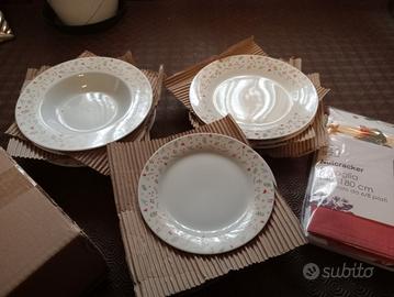 servizio piatti nuovissimo per 6 persone vendo causa inutilizzo più tovaglia natalizia da 140 x180 per tavola da 6/8 posti