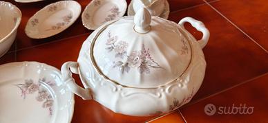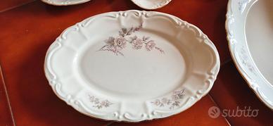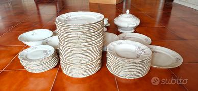 Vendo servizio di piatti vintage, anni 60, marca Bridge. Decorazione con motivo floreale e bordo oro. Composto da 72 pezzi: