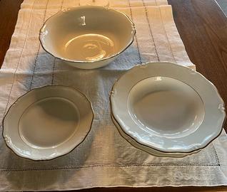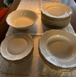 Vendo raffinato servizio in porcellana bianca con bordo sagomato e filetto dorato, marchio Winterling Marktleuthen Bavaria (Germania), sinonimo di qualità e tradizione tedesca.