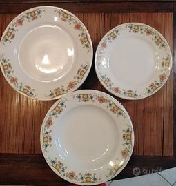Servizio di porcellana anni 70 Richard Ginori composto da: 8 piatti piani, 8 piatti fondi, 8 piattini da frutta/dolce - 1 zuppiera - 1 piatto da portata ovale - 2 piatti da portata tondi - 8 tazzine e piattini da caffè - 8 tazze e piattini da tè - 2 teiere - 1 zuccheriera - 2 bricchi. Tutto In ottimo stato.