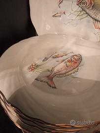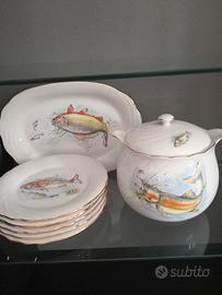 Servizio di portata composto da 6 piatti piani uno lungo per portata e 1 zuppiera.il servizio e di marca tognano mai usato.