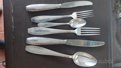 Servizio di posate Apollo Christofle francesi anni 20 in metallo argentato composto da 9 forchette 12 coltelli 9 cucchiai 12 forchette dolce 12 coltelli dolce 10 cucchiaini, posate insalata , posate arrosto pinza mestolo cucchiaio salsa 12 cucchiaini caffè
