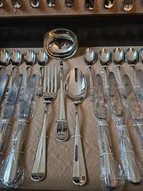 Il set include 12 posate da tavola per tipo (cucchiai, forchette, coltelli e cucchiaini da caffè/dolce), posate da frutta, mestolo, forchettone e cucchiaione da insalata.