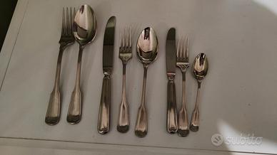 servizio di posate completo di 12x6 pezzi più due posate di servizio per un totale di 74 pezzi. Modello elegante e classico