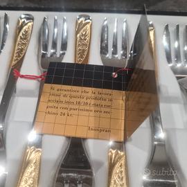 vendesi servizio di posate da dolce in oro gold Cambridge completo di 12 forchettine inoxpran vintage tolgo per inutilizzo