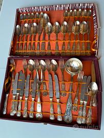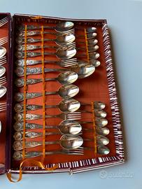 Splendido servizio di posate argentate (marchio ARG.800.X), completo e custodito nella sua scatola originale. Perfetto per chi ama lo stile classico o vuole dare un tocco raffinato alla tavola. Composizione del set: • Cucchiai grandi • Forchette • Coltelli • Cucchiaini da caffè • Cucchiai da dessert