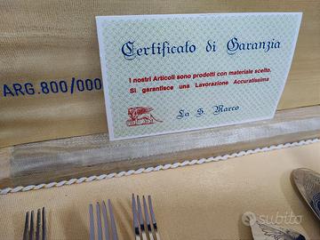 Servizio da tavola per dolce con manici Argento 800/1000. Per n.6 persone, in confezione originale, mai usato. Argenteria "La San Marco". Scatola dimensioni cm. 40x34x4.