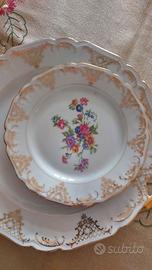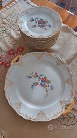 Servizio da dolce/frutta in fine porcellana francese. Composto da piatto dolce grande e 6 piatti di servizio PERFETTI finemente decorati con motivi floreali. Prodotti dalla "Marque L.T. France" di Lione. Perfette condizioni (piatto di portata + 6 piattini perfetti. ((( Ulteriori 4 piattini sono forniti ma con alcune sbrecciature dei bordi ))) . Visibili senza impegno in SANGANO (TO), previo accordo con ANGELA. Per fragilità ed ingombro sconsiglio fortemente la spedizione (tuttavia, nel caso, posso spedire accuratamente imballato ma non accetto poi resi).
