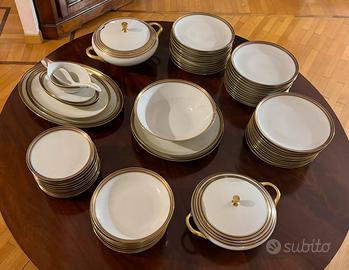 Elegantissimo servizio vintage in porcellana Eschenbach Bavaria da 12 persone più riserve tot. 71 pezzi marchiato W4795-10 con bordo in oro zecchino e blu cobalto