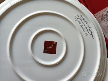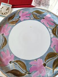 Piatto in porcellana dipinto a mano, quindi pezzo unico e diverso da altri della sua stessa serie numerata (n 325/999 del 1993 firmata Fabri). Rifiniture in oro zecchino 24k.