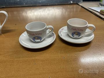 tazze 4 pz tazzine con piattino 5 pz piatti porta tazzine 2 pz tegliera ciotola colazione 4 pz piatti fondi 4 pz + non in foto piatti piani 4 pz portatovagliolo 5 pz ciotola più piccola 4 pz piatti grandi piani pz 2 tutto firmato Sanrio