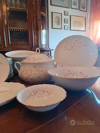 Il servizio comprende 12 piatti piani piccoli, 12 piatti piani grandi, 12 piatti fondi, 12 tazzine, 1 piatto piano grande, 1 piatto piano ovale, 1 zuppiera, una zuccheriera, 1 piatto fondo piccolo 1 brocca per il caffè/ te.