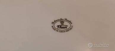 Servizio vintage del 2010 Thun collezione 2010 se non ricordo male tutto il servizio è placcato nei bordi in argento 1 piatto piano extra 9. piatti fondi 9. piatti piani 9. piattini da dessert 2 zuppiere 10 tazzine più piattini 1 zuccheriera