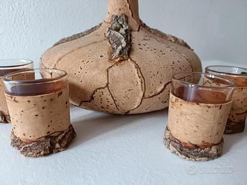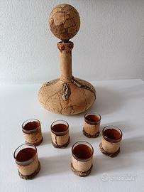 vendo servizio liquori rivestito in sughero originale della Sardegna, con vassoio in sughero 45x30, particolare bottiglia 22x33 e 6 bicchierini come nuovi, in tutto a soli 15 euro