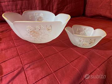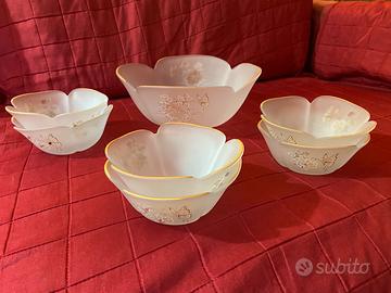 Servizio macedonia con zuppiera e 6 coppette in vetro von motivi floreali e farfalle e piccoli brillantini