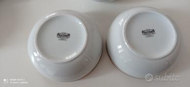 Raffinatissimo servizio in porcellana tedesca. NUOVO: MAI USATO:. Consta di 10 ( dieci ) coppette PIU' zuppiera/fruttiera. Contattatemi per ulteriori eventuali informazioni. Massima serieta'