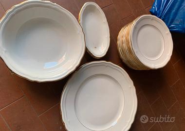 Servizio di piatti in finissima porcellana bianca cin profilo in oro zecchino per 12 persone