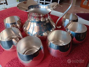 Servizio formato da una brocca caraffa e 6 bicchieri in silver plate, di altissima qualità, non troverete un altro set così della Marten Design.