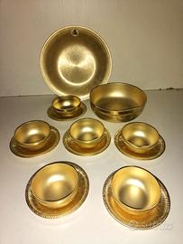 Servizio natalizio per aperitivo da 8 pezzi, 6 ciotole con piattino + 2 vassoi in metallo dorato