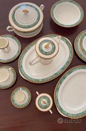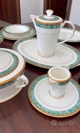 Vendo elegante servizio da tavola Noritake Woodlawn originale, in bone china, con raffinato bordo verde e finiture in oro.