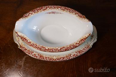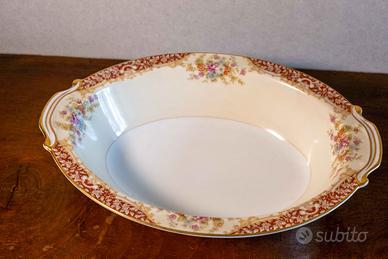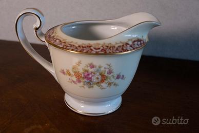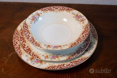 Servizio Noritake Japan vintage anni '50 Elegante e raro servizio piatti, vassoi, salsiere, teiere e tazze di porcellana Noritake, vintage, made in Japan, anni 50. Condizioni OTTIME, praticamente mai usato. Nelle foto potete vedere i motivi di ogni pezzo. Il tutto è così composto: - 12 piatti piani cm.26.5; - 12 piatti fondi cm.22.5; - 12 piattini cm.19; - 12 piattini cm.16; - 1 vassoio ovale cm.41x30.5; - 1 vassoio ovale cm 29.5x22; - 1 insalatiera ovale cm 27x19; - 1 salsiera rotonda con piattino cm.19x12; - 1 salsiera a bricco cm.15x10; - 1 zuccheriera rotonda cm 13 - 1 teiera rotonda cm 14 - 1 zuppiera rotonda cm.22; - 12 ciotole cm 14 - 11 tazze da The cm 9.5. La delicatezza degli oggetti ed il peso sconsiglia una spedizione. Solo consegna a mano , zona Albaro.