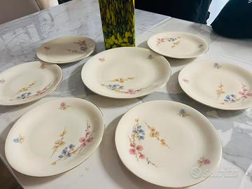 6 piattini e grande piatto da portata, Con decorazioni floreali e bordo in oro zecchino. In perfetto stato di conservazione.