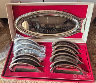 Servizio da pesce marchio Melloni made in Italy in acciaio inox. 6 piatti e 1 piatto da portata. Tutto nella sua scatola originale. Ritiro a Roccaforzata (TA)
