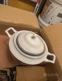 Vendo elegante servizio di piatti Mondial Casa in porcellana fine, mai utilizzato e ancora nella scatola originale.