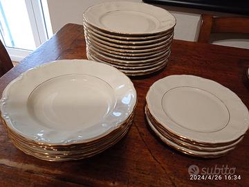 Servizio piatti Bavaria kronester in porcellana e bordo oro 12 piatti piani 6 piatti fondi 6 piatti piccoli Insalatiera Piatto portata tondo e uno piccolo ovale Zuppiera con decoro in oro