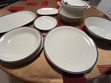 Servizio piatti Bavaria con filo blu e oro composto da 22 piatti piani - una zuppiera - una insalatiera - due piatti da portata - una antipastiera - dodici piatti fondi - dodici piatti frutta