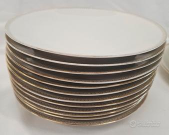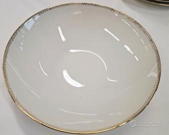 Elegante servizio in porcellana Bavaria Schirnding per 10 persone, che include, oltre ai piatti piani e fondi, una zuppiera, una ciotola e due piatti da portata. Ottime condizioni.