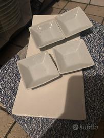 Servizio da 12: Piatti piani Piatti fondi Piatti per antipasti Piatti per dessert Piatti rettangolari di 2 misure con ciotoline