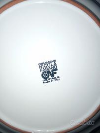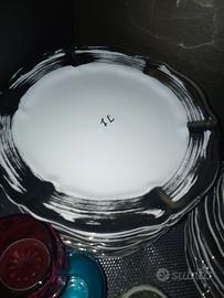 Servizio da 12 fatto a mano da ceramisti pugliesi Nicola Fasano con bordo platino. 36 pezzi più un piatto portata. Nuovo mai usato. Questo articolo non prevede confezione,non è possibile la spedizione .prezzo 1200 vendo a 600