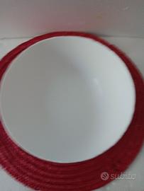 servizio piatti in vetro opale per 6 persone composto da 6 piatti piani, 6 piatti fondi. 6 piatti frutta. In omaggio una capiente insalatiera. Adatto per lavaggio in lavastoviglie ed uso microonde.