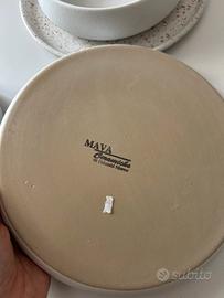 Servizio piatti ceramica bianca effetto graniglia – 4 pezzi design minimal