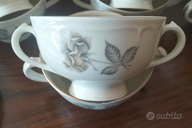 stupendo sevizio piatti da 12 di RICHARD GINORI anni 70 , bordo filo oro e decoro rosa grigia così composto