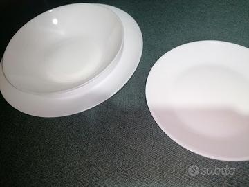 set di piatti Arcopal bianco da 18 pezzi. Prodotto in vetro temperato, che offre un'elevata resistenza agli urti e ai graffi. Il set include 6 piatti piani, 6 piatti fondi e 6 piatti da dessert. Adatto per l'uso quotidiano e lavabile in lavastoviglie. Utilizzabile nel microonde. Con scatola, nuovo mai usato. No spedizione Scrivimi pure per info o per accordi sul ritiro. Grazie