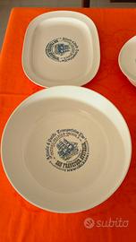 servizio piatti da 6 coperti in mepal comprende piatti piani, fondine, dessert +piatto rettangolare da portata e insalatiera diametro 27 cm. mai usato.
