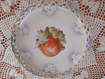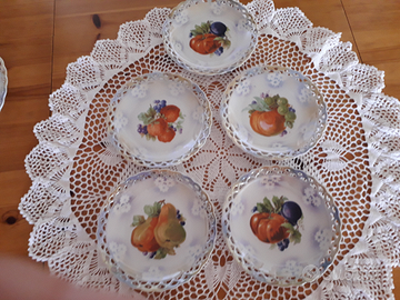 Servizio composto da n.1 piatto grande portadolce + n.5 piattini da dolce. In perfette condizioni, senza sbeccature ne venature. Da notare la lavorazione particolare dei bordi