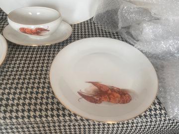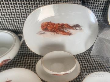 Pregiato Servizio per pesce anni 60', composto da 16 pezzi : 12 piatti piani,una zuppiera con coperchio,un piatto ovale per servizio,una salsiera. Porcellana Bavaria Tirschenreuth Germania Ottimo stato Nessuna rottura o imperfezione Zona San Saba o Ciampino
