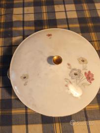 Servizio piatti decorati a fiori e orlo giallo composto da 21 pezzi. 4 Piatti fondi, 6 piatti piani, 6 piattini dolce, 2 coppe grandi, 1 piatto ovale, 1 zuppiera, 1 zuccheriera.