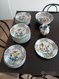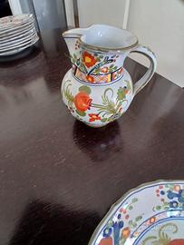 Vendo n.10 piatti fondi da cm 23 i n. 10 piatti piani da cm 23 9 piatti dolce cm 20 n.1 terrina cm 27 n. 2 piatti da cm 25 n. 1brocca da mezzo litro servizio di MAIOLICA ANTICA FAENZA C.A.C.F. decoro garofano. Il servizio è in ottime condizioni e usato pochissimo.