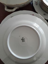 servizio completo per 6 persone piatti e caffe in finissima porcellana datata anni 1950 praticamente nuova mai usata , posta soloin vetrina. lista completa su richiesta . trasporto escluso consegna a brevi mani visto la fragilità.