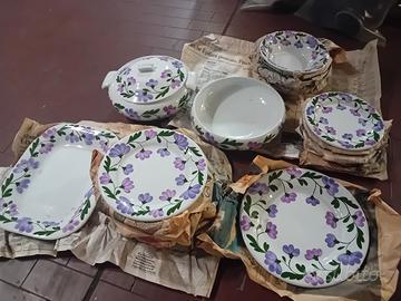 servizio piatti fiore viola Richard Ginori, ottime condizioni, 6 piccoli, 6 fondi, 12 piani, insalatiera, zuppiera, 2 piatti da portata. zona ritiro viale Marconi, no spedizione