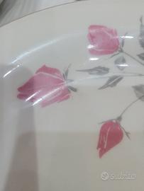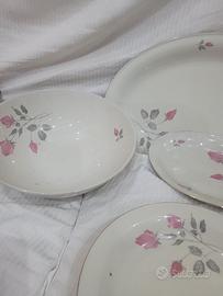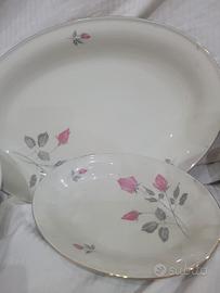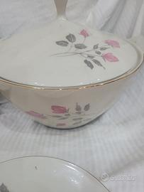 Servizio piatti con zuppiera, ovale grande e piccola e piatti x 12. Tutti e 3i tipi di piatti. Roselline con bordo dorato