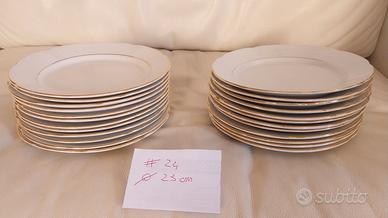 Svendo servizio completo ceramiche Fontebasso, composto da 34 piatti piani, 12 piatti fondi, 12 piatti dolce, 1 insalatiera, 2 piatti grandi ovali, 3 piatti picccoli ovali, 2 zuppiere. Mai utilizzato. Consegna a mano